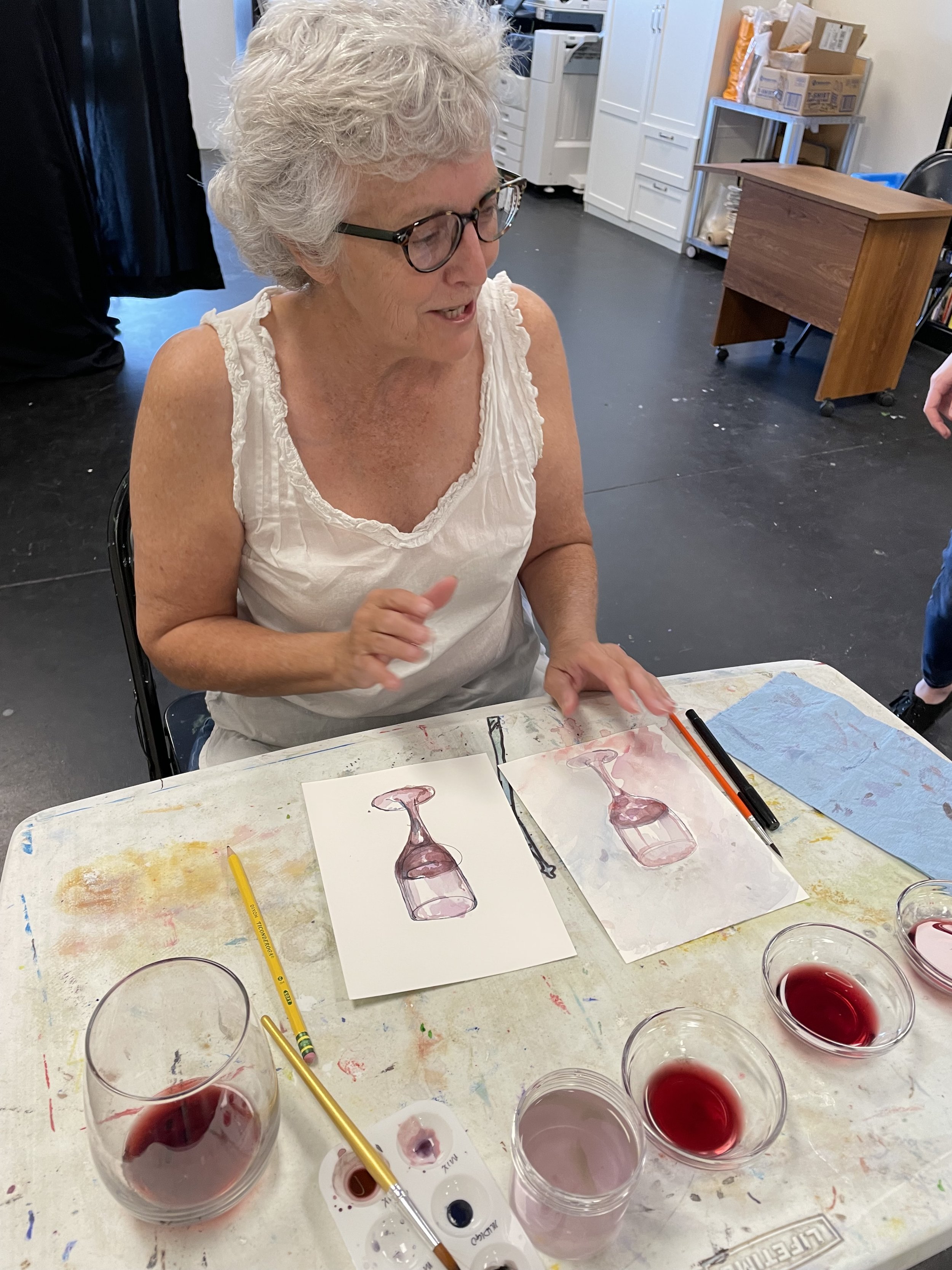 Join watercolor artist Teresa Cook for a unique and playful painting experience where wine becomes both the medium and the muse! In this creative workshop, we’ll paint using actual Cabernet, Sweet Red, and Merlot alongside traditional watercolors to explore rich stains, flowing textures, and warm, earthy hues that only wine can create.