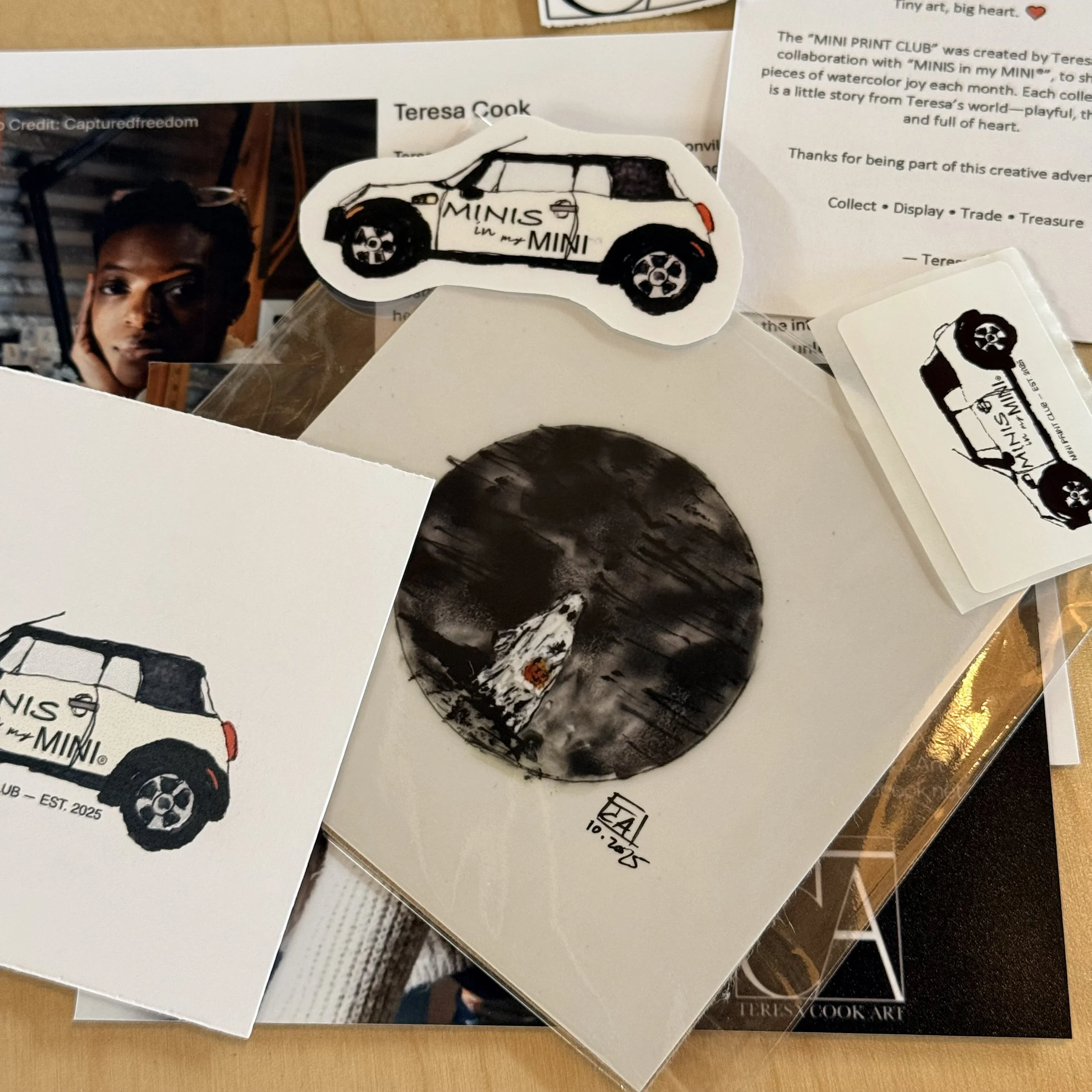 Each month, members receive a collectible mini print featuring Teresa’s signature watercolor style — inspired by storytelling, travel, and the beauty of everyday moments. Every piece is printed with care, packaged with love, and ready to display, trade, or gift.